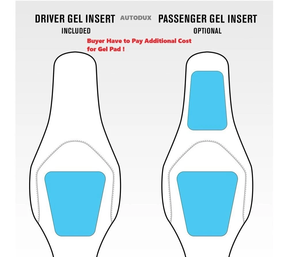 *Gel Pad: A gel pad will be installed by us while making the seat. It acts as a Shock absorber, giving you tailbone support and protecting your tailbone from speed breaker jerks. The best motorcycle Gel seat pad evenly distributes pressure, which reduces numbness. The thickness of the gel pad is 6mm.