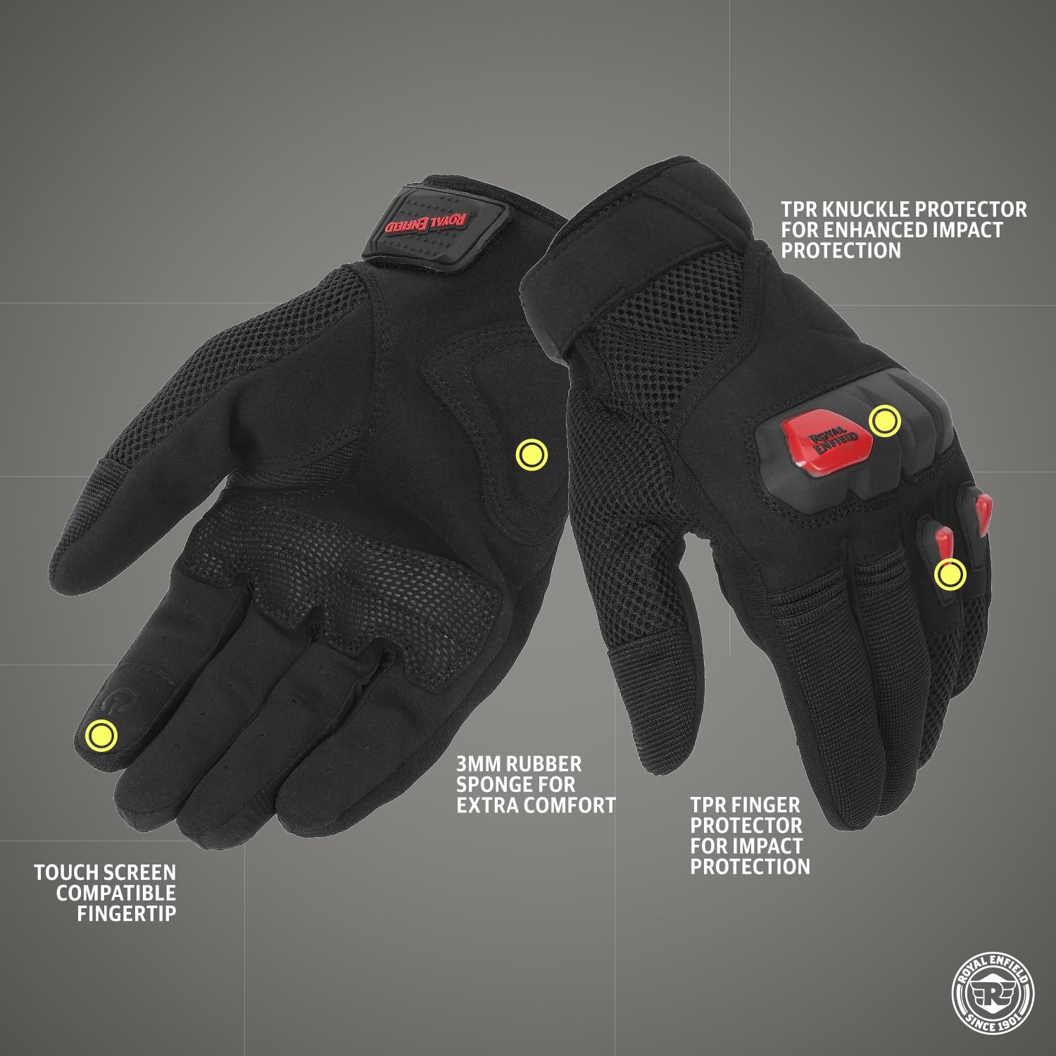 Autodux Royal Enfield Rambler V3 Cycling Riding Gloves|TPR Knuckle Protectors for Protection Against Impacts and Abrasion|100% Polyester Air Mesh|Poly Stretch Fabric for Comfortable