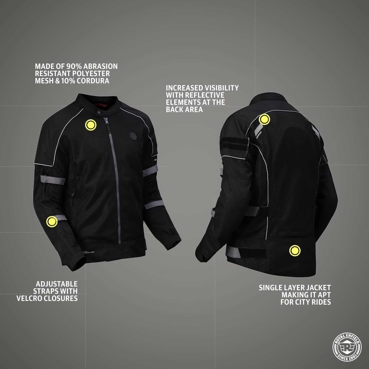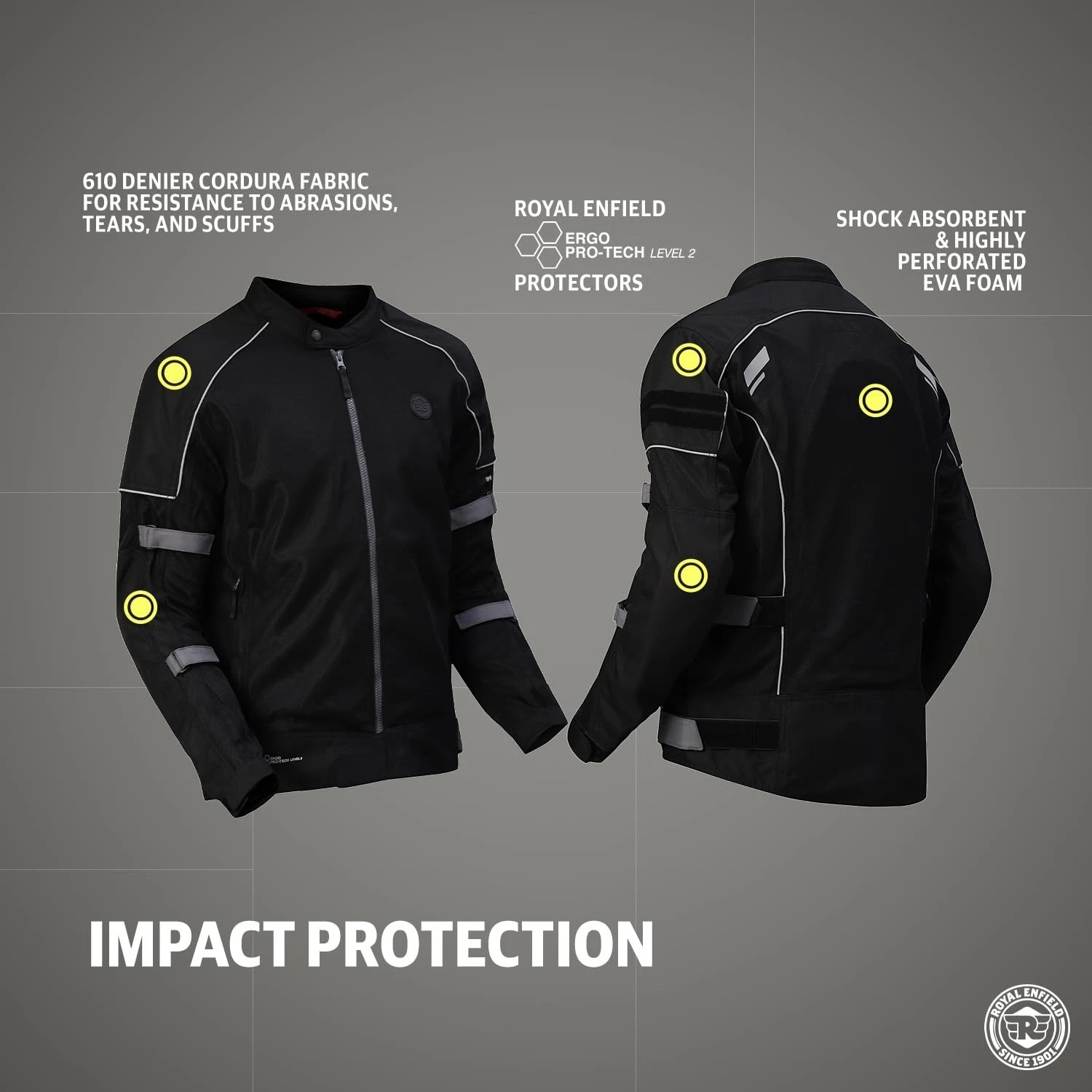 - ● Impact Protection: Equipped with Royal Enfield Ergo pro-tech CE level 2 protectors at shoulder & elbow. In addition, there is a pocket for back protectors that can be upgraded with Royal Enfield Ergo pro-tech CE level 2 armours.