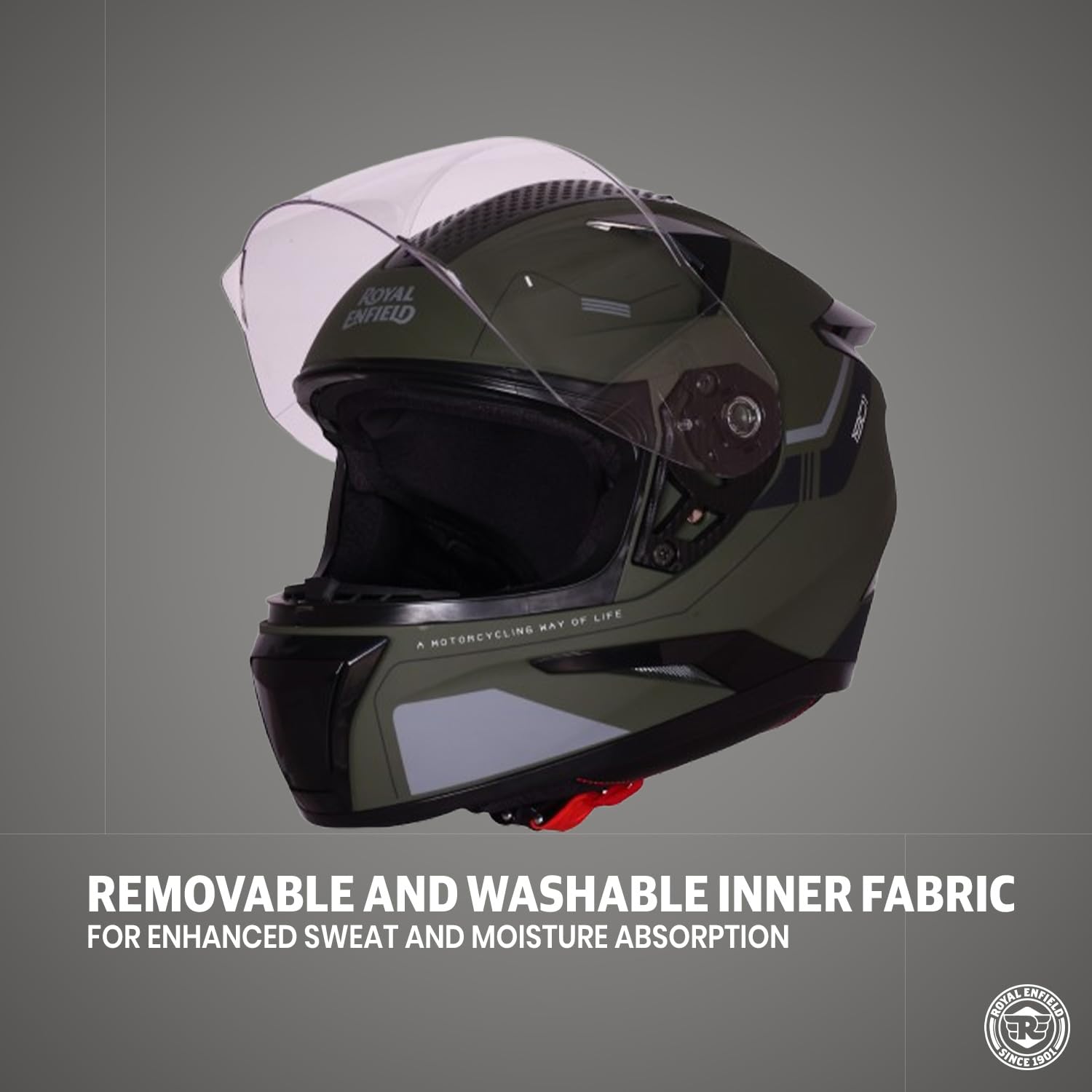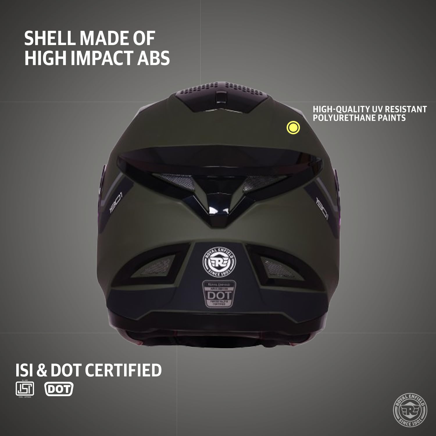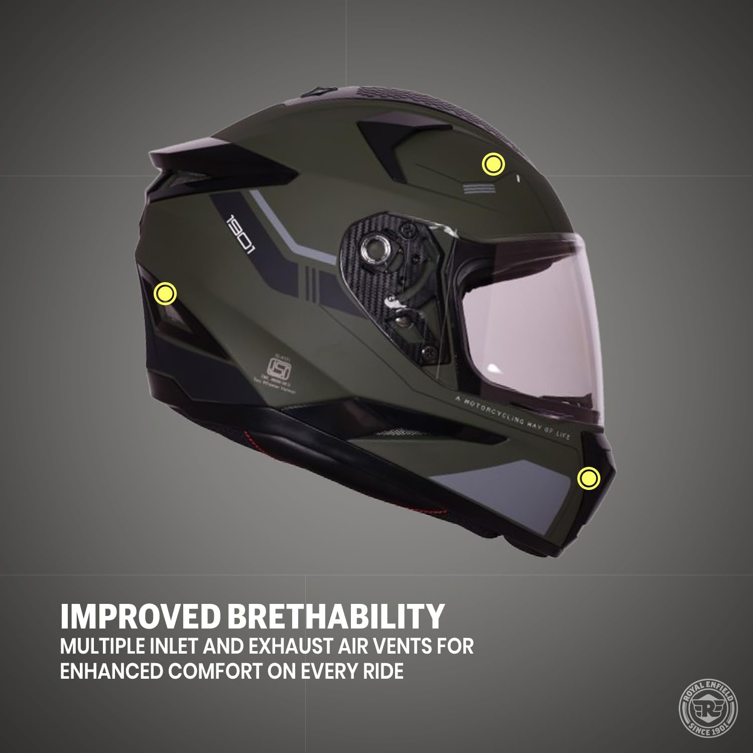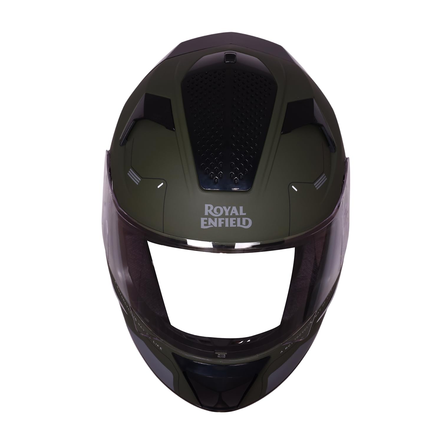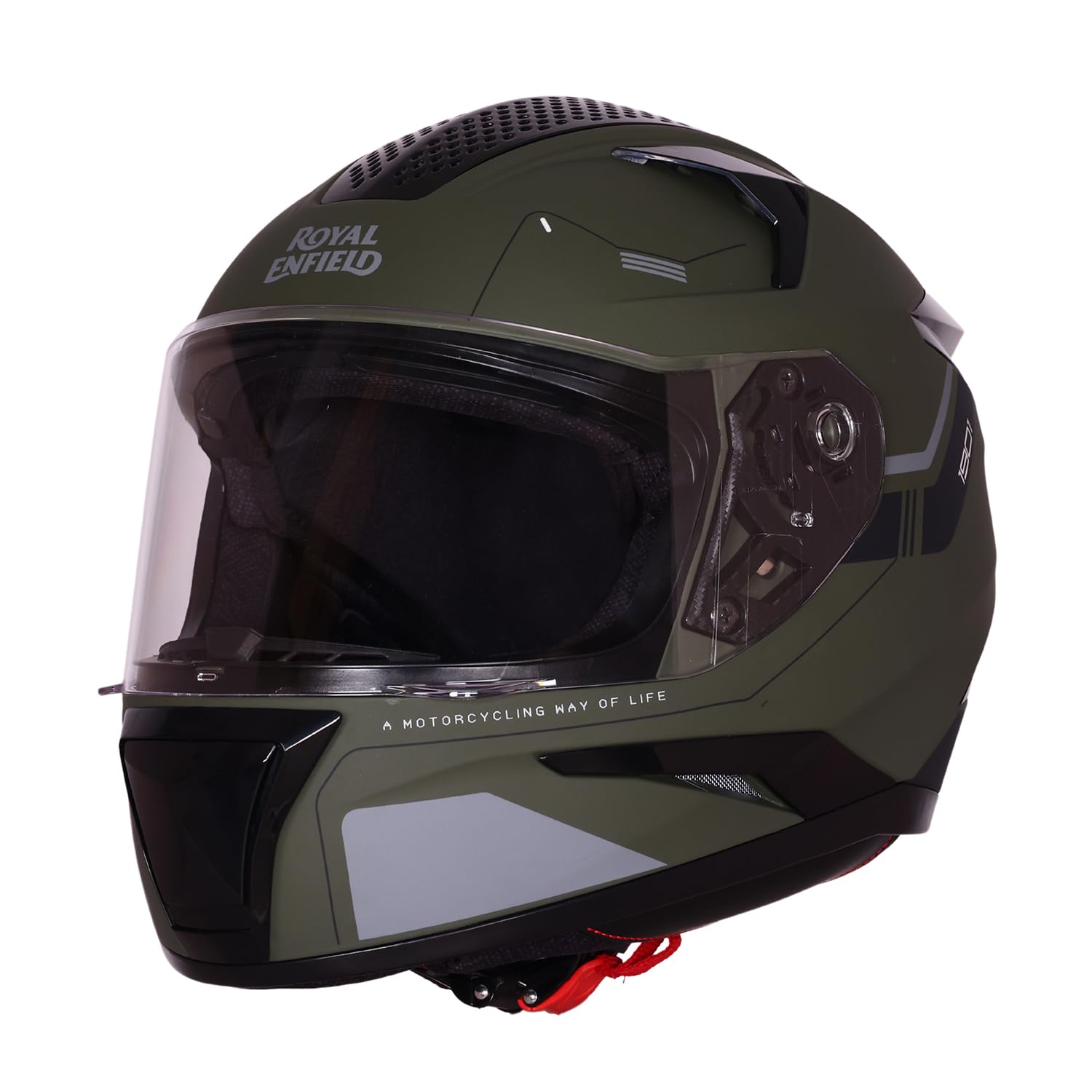 ROYAL ENFIELD AIR-X 1901 Full Face Helmet | Certification: ISI & DOT | High Impact Grade ABS Shell |Multipore Ventilation System | Aerodynamic Design with Aggressive Styling | Battle Green (M) 58 CM
