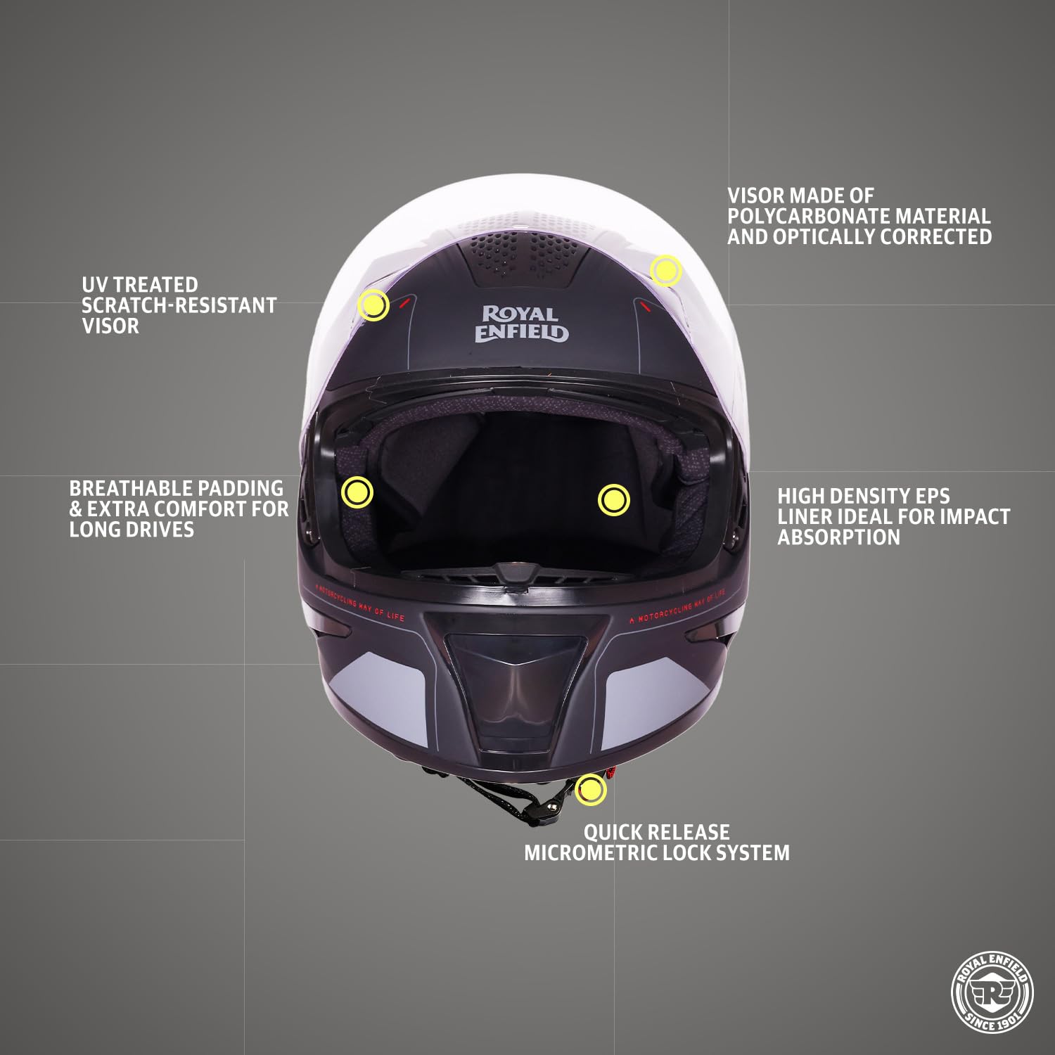 ROYAL ENFIELD AIR-X 1901 Full Face Helmet | Certification: ISI & DOT | High Impact Grade ABS Shell |Multipore Ventilation System | Aerodynamic Design with Aggressive Styling | Black (M) 58 CM