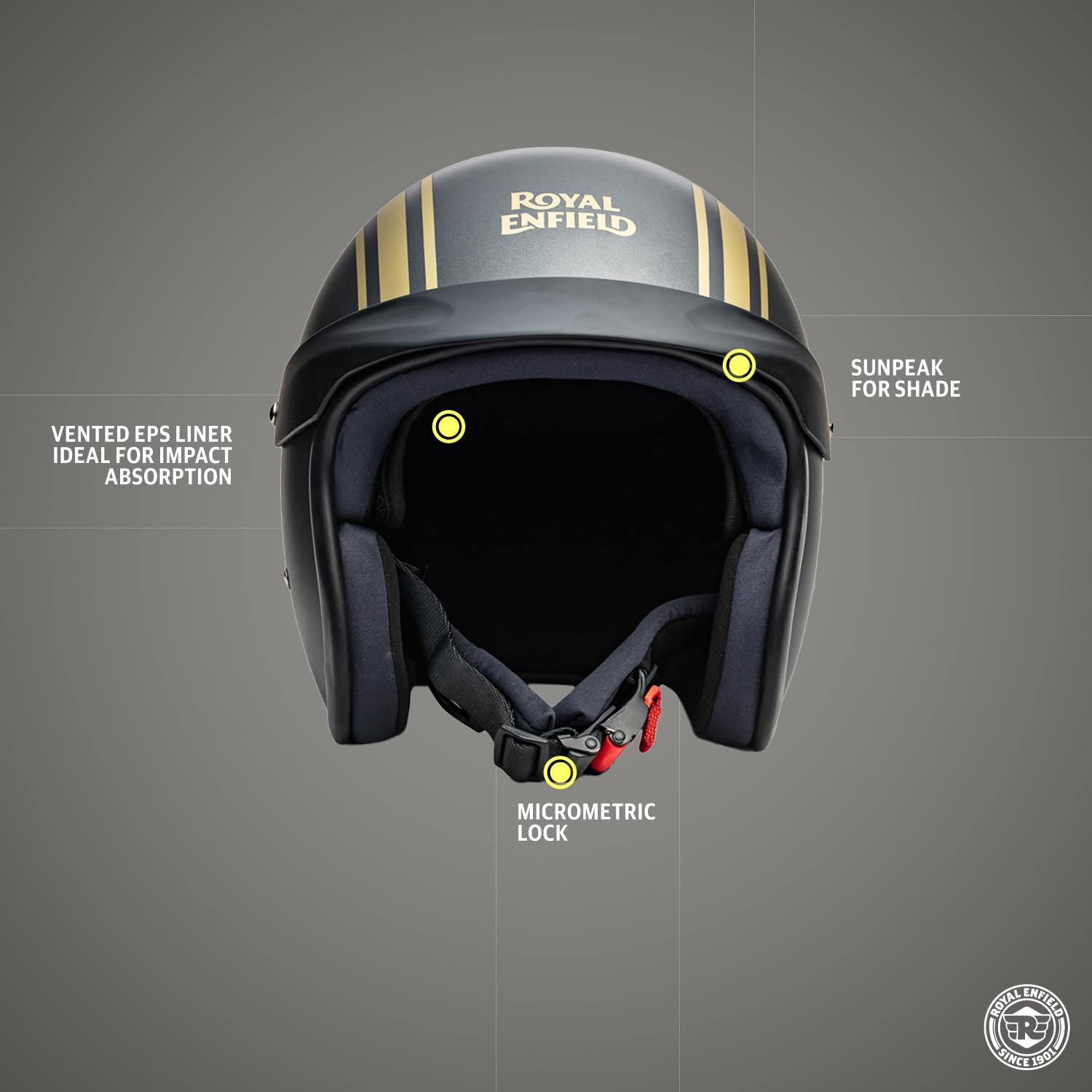 Royal Enfield ISI Certified Open Face Riding Helmet with Excellent Impact Protection, Scratch Resistance, Partially Removable and Washable Comfort Liner Athena Grey, Size: M( 57-58Cm),Motorcycling